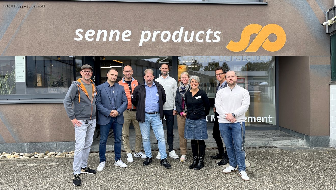 Sechs Unternehmensvertreter, die IHK Lippe zu Detmold, die Effizienz-Agentur NRW und InnoZent OWL e.V. trafen sich am 25.09.2025 zum dritten Treffen der Erfahrungsaustauschgruppe „Nachhaltigkeit und Zirkularität gestalten“ bei der senne products GmbH in Hövelhof. Die senne products GmbH ist ein Spezialist für individuelle und nachhaltige Kunststofflösungen in verschiedenen Bereichen wie Visual Management, Büromaterialien, Sonderanfertigungen oder Konvertierung mit 55 Mitarbeiterinnen und Mitarbeitern in Hövelhof. Das Unternehmen bietet seit zwei Jahren ein ISCC PLUS (International Sustainability & Carbon Certification) zertifiziertes Vinyl an, das biobasiert durch einen besonders hohen Anteil von Holzöl ist, ökobilanzsicher und eine ausweisbare CO2 Reduktion für Scope 3 mitbringt